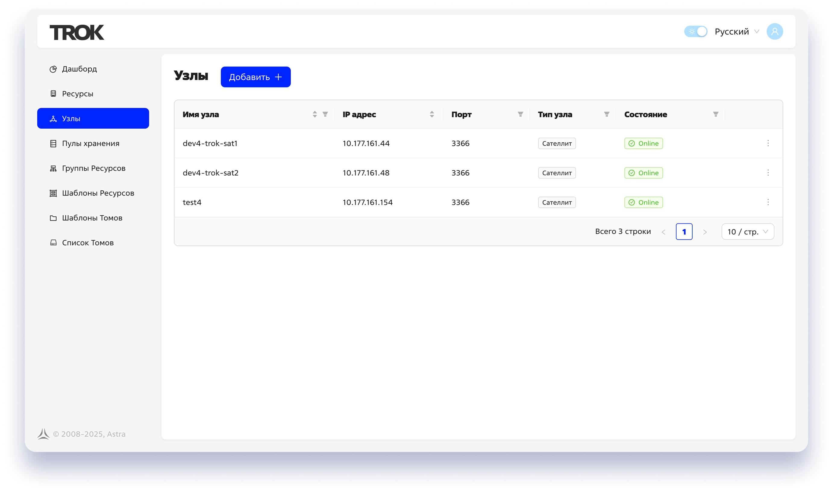 и всеми ресурсами хранения данных - Узлы хранения TROK отвечают за создание, изменение